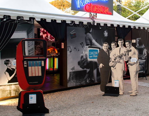 Progetto dell’allestimento e dell’immagine della mostra RIVIERA CINEBOX, Canzoni con vista. Gli apparecchi della musica – il juke-box americano, il Cinebox italiano e lo Scopitone francese –, le foto di scena e le pellicole originali d’epoca. I convegni e le confidenze in pubblico. Giugno—settembre 2014